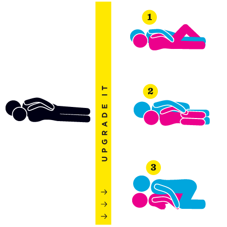 As you're spooning, lift your top leg over his body and turn your head toward him so you're making eye contact, says Ava Cadell, Ph.D., author of The Sexy Little Book of Sex Games. Locking eyes while your bodies are pressed together makes the spoon even more physically and emotionally intimate.